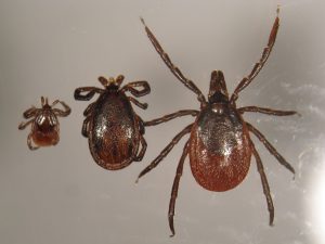 Zlava nymfa, samcek a samicka kliesta obycajneho