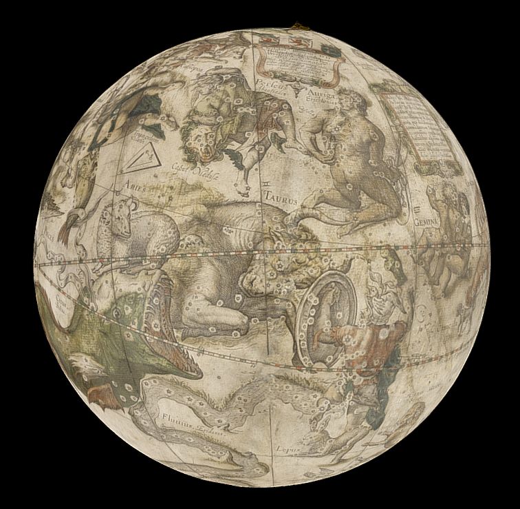Tzv. liechtensteinské segmenty z prvého celestiálneho glóbusu Blaeua z roku 1596/97